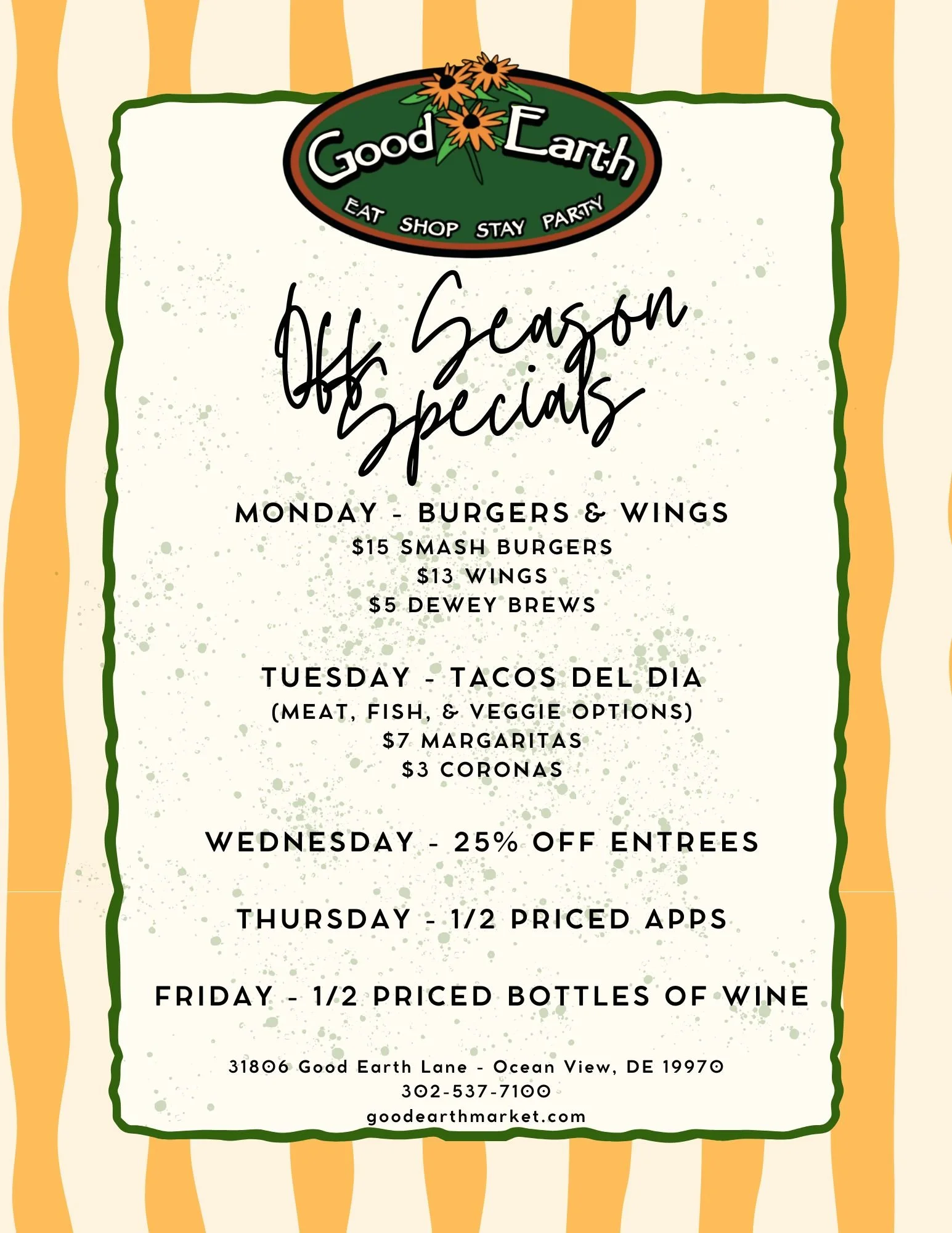 Email melissa@goodearthmarket.com or Call 302-537-7100 to reserve your spot!
